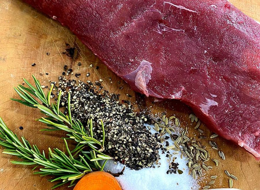 Reh-Rücken mit Knochen26€/kg ohne Knochen 31€/kg